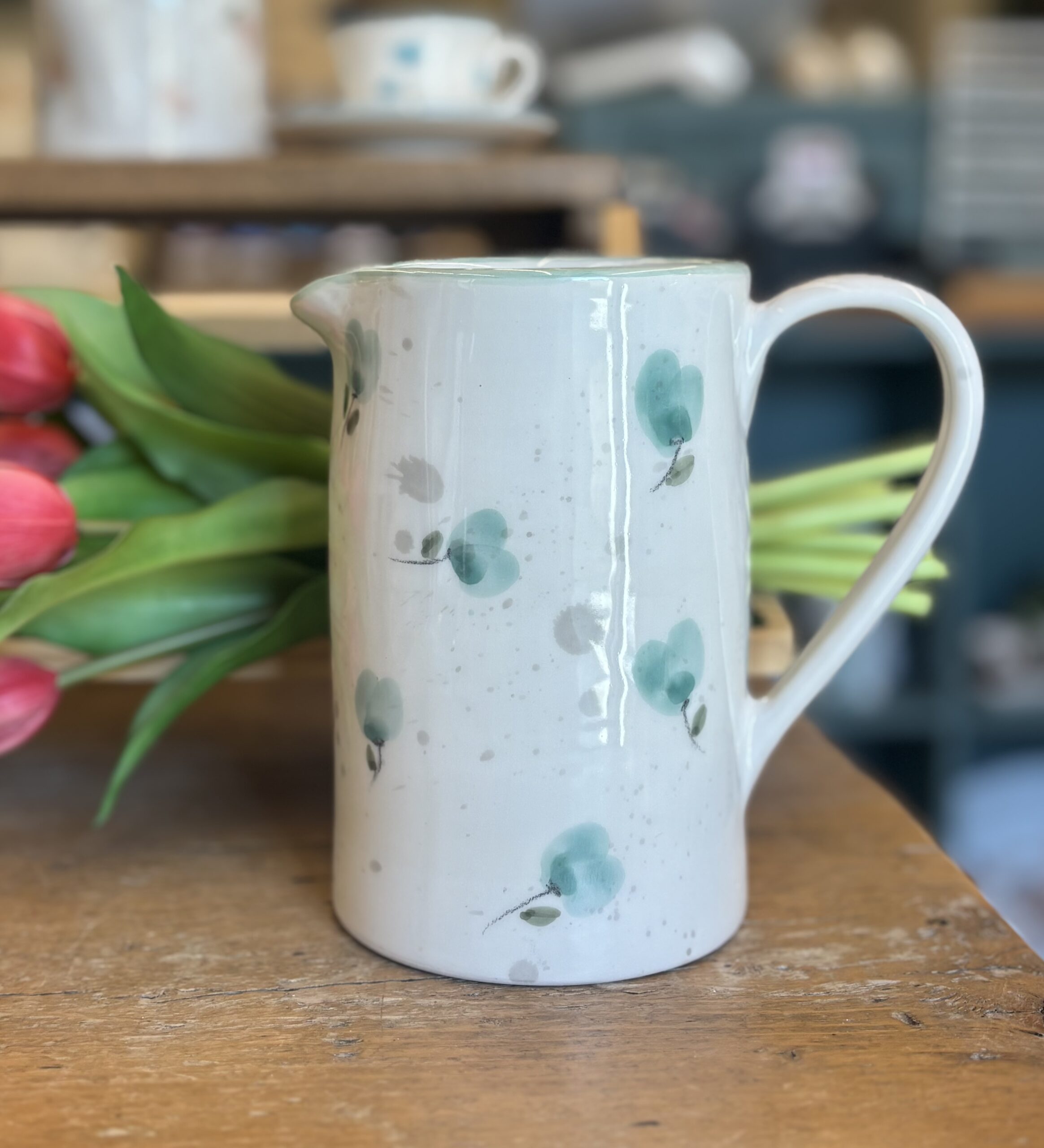 Brocca in ceramica dipinta a mano da noi. Sono tutti pezzi unici ed è per questo che potranno differire dalle foto . Le piccole imperfezioni sono parte dell’artigianalità e dell’unicità di ogni prodotto. Se il prodotto è esaurito contattateci per verificarne la disponibilità in negozio. DIMENSIONI: 16cm di altezza , 10cm di diametro.