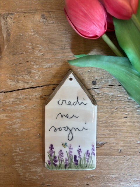 Casina in ceramica da appendere interamente realizzata e dipinta a mano da noi. Sono tutti pezzi unici ed è per questo che potranno differire dalle foto . Le piccole imperfezioni sono parte dell’artigianalità e dell’unicità di ogni prodotto. Se il prodotto è esaurito contattateci per verificarne la disponibilità in negozio.