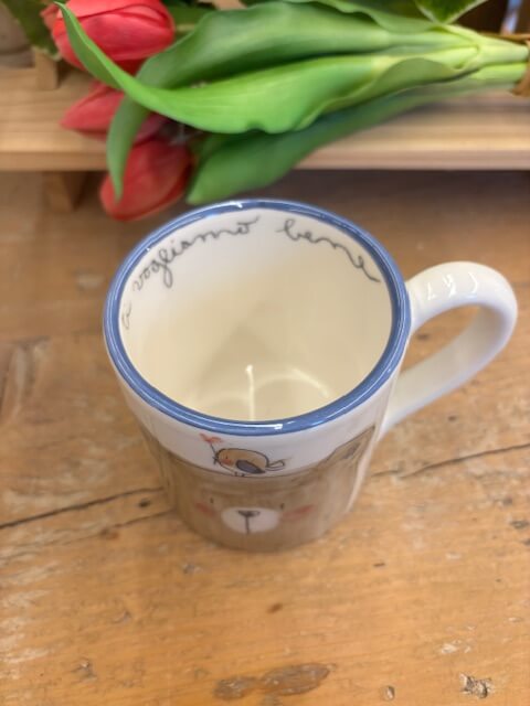 Tazza Mug in ceramica dipinte a mano da noi. Sono tutti pezzi unici ed è per questo che potranno differire dalle foto . Le piccole imperfezioni sono parte dell’artigianalità e dell’unicità di ogni prodotto. Se il prodotto è esaurito contattateci per verificarne la disponibilità in negozio.