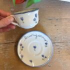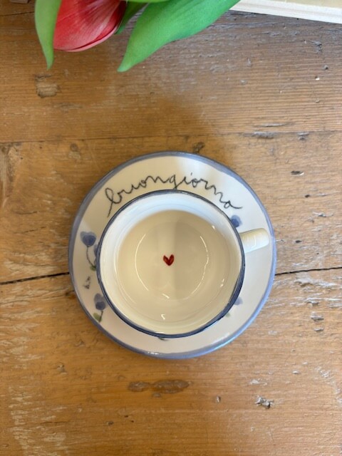 Tazzina con piattino in ceramica dipinte a mano da noi. Sono tutti pezzi unici ed è per questo che potranno differire dalle foto. Le piccole imperfezioni sono parte dell’artigianalità e dell’unicità di ogni prodotto. Se il prodotto è esaurito contattateci per verificarne la disponibilità in negozio.