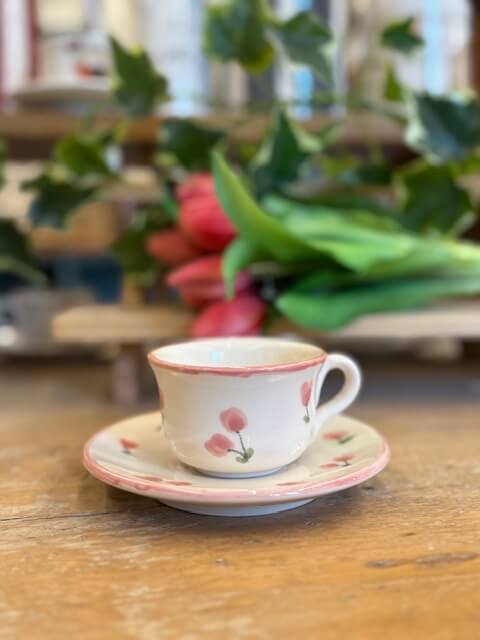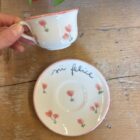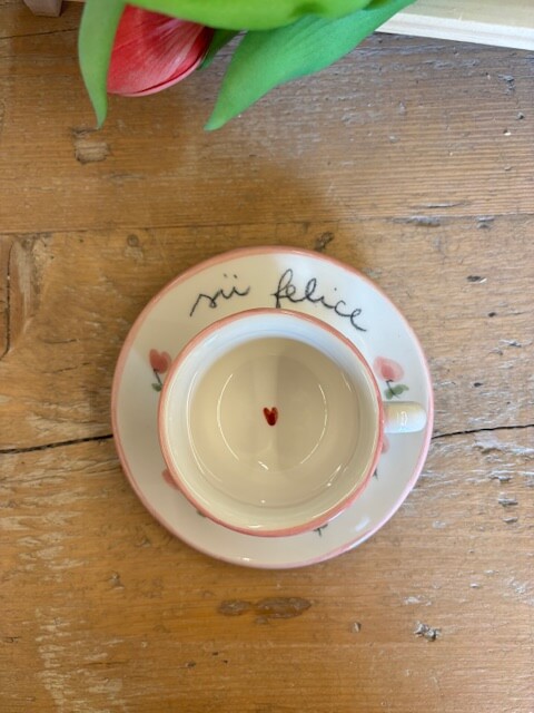 Tazzina con piattino in ceramica dipinte a mano da noi. Sono tutti pezzi unici ed è per questo che potranno differire dalle foto . Le piccole imperfezioni sono parte dell’artigianalità e dell’unicità di ogni prodotto. Se il prodotto è esaurito contattateci per verificarne la disponibilità in negozio.