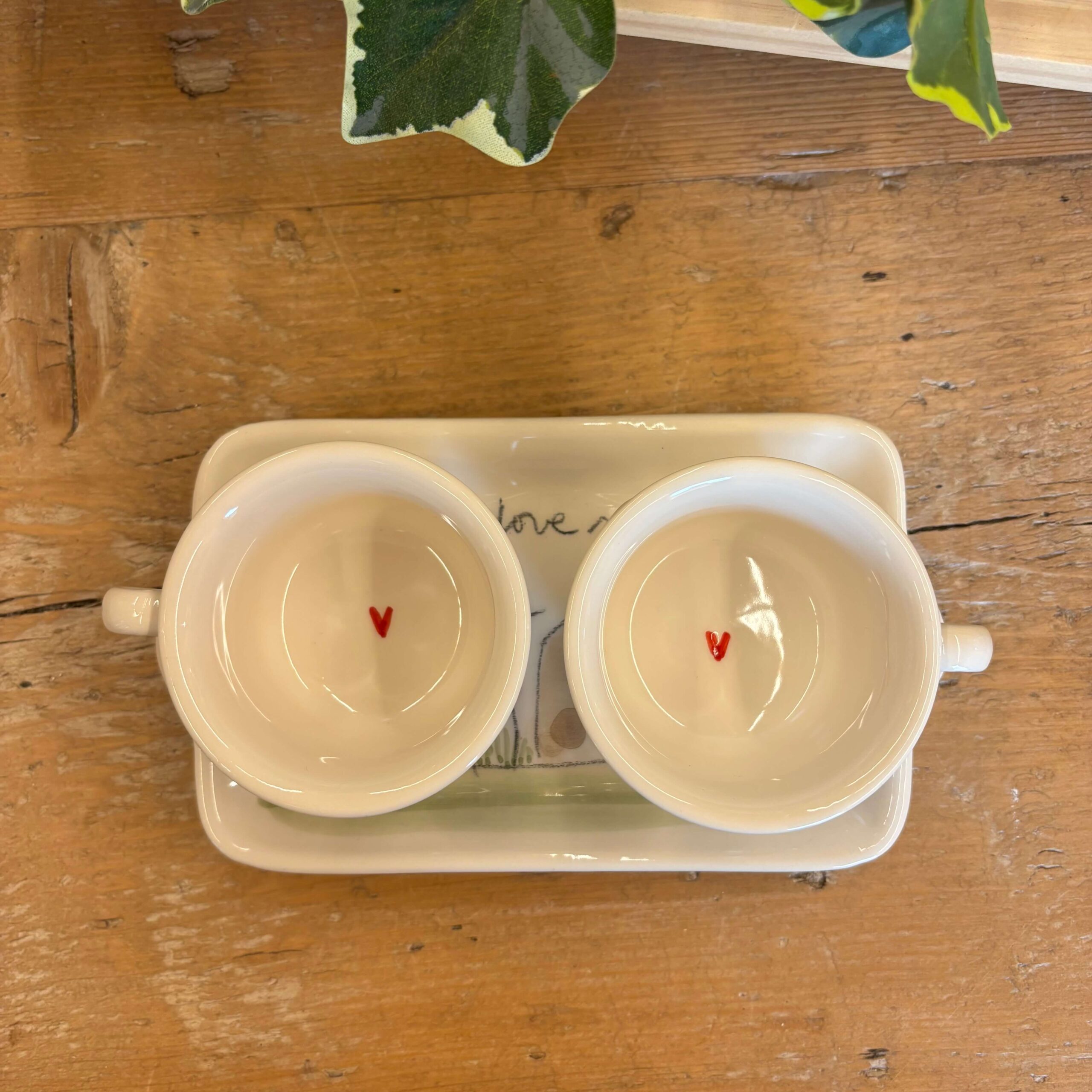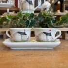 Servizio da caffè per due con vassoietto e due tazzine in ceramica dipinto a mano da noi. Sono tutti pezzi unici ed è per questo che potranno differire dalle foto . Le piccole imperfezioni sono parte dell’artigianalità e dell’unicità di ogni prodotto. Se il prodotto è esaurito contattateci per verificarne la disponibilità in negozio.